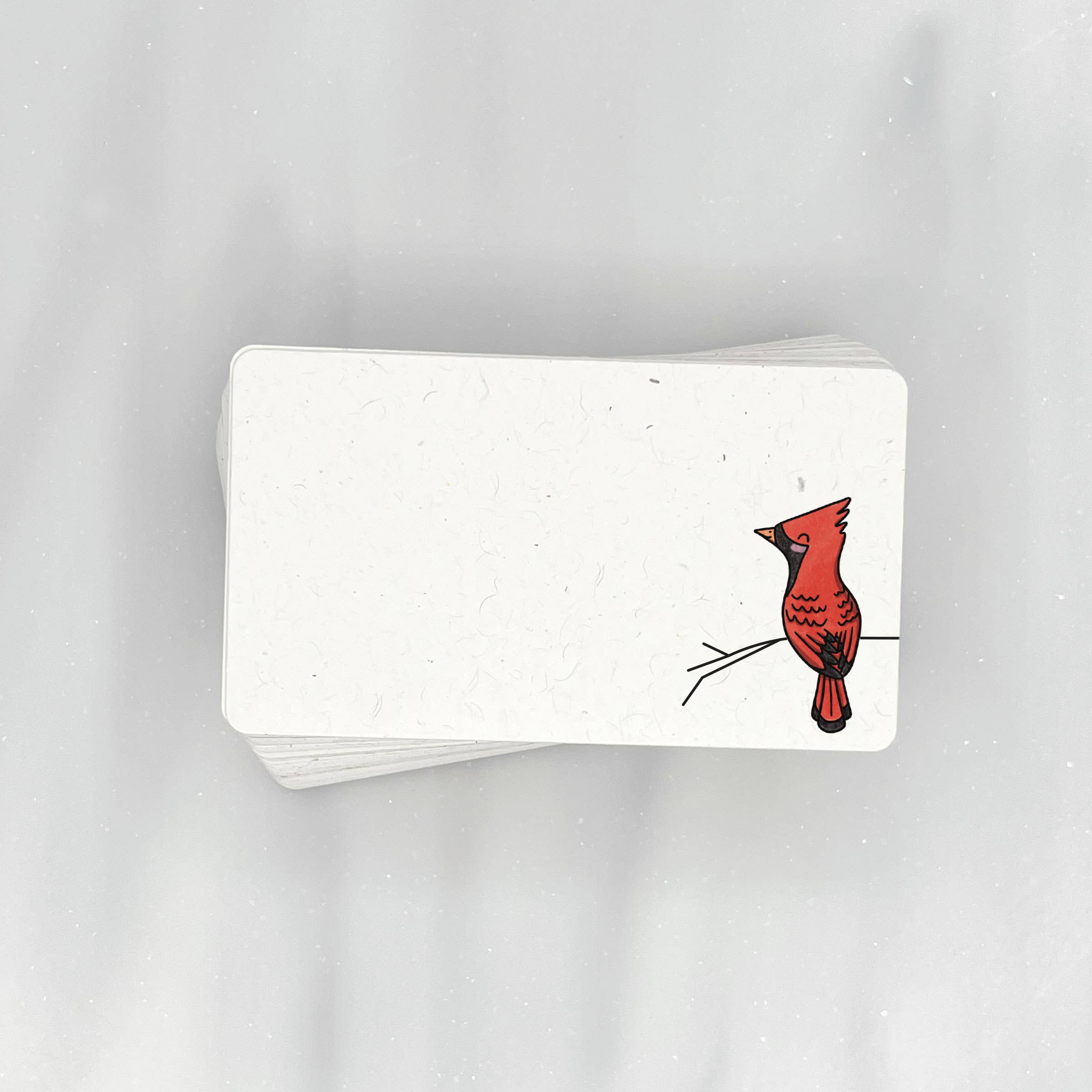 These eco friendly mini note cards feature a red Cardinal on a branch and are great for kids and adults alike. Design on the front. Blank on the back. 56 mini notes per pack.