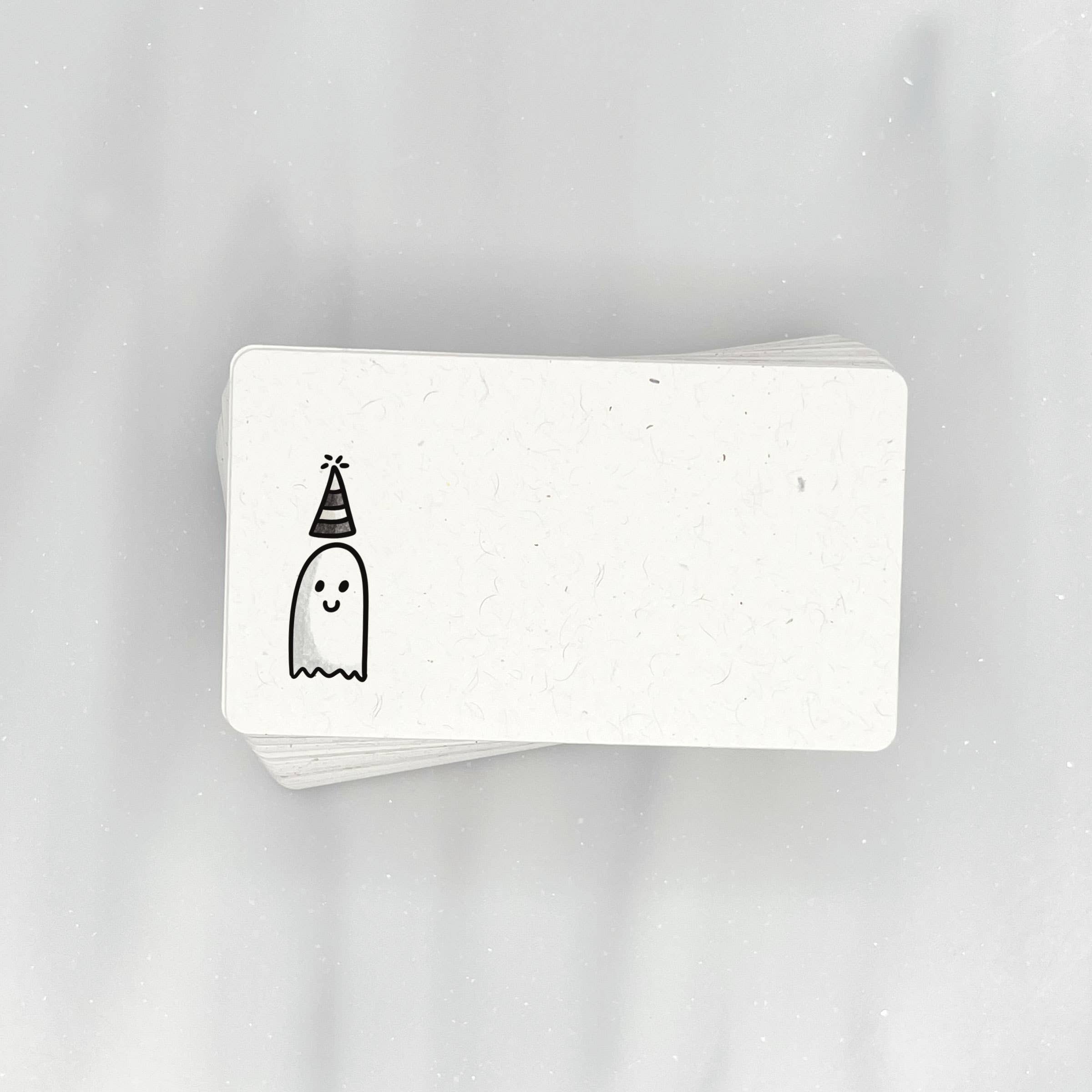 These eco friendly mini note cards feature a cute ghost and are great for kids and adults alike. Design on the front. Blank on the back. 56 mini notes per pack.