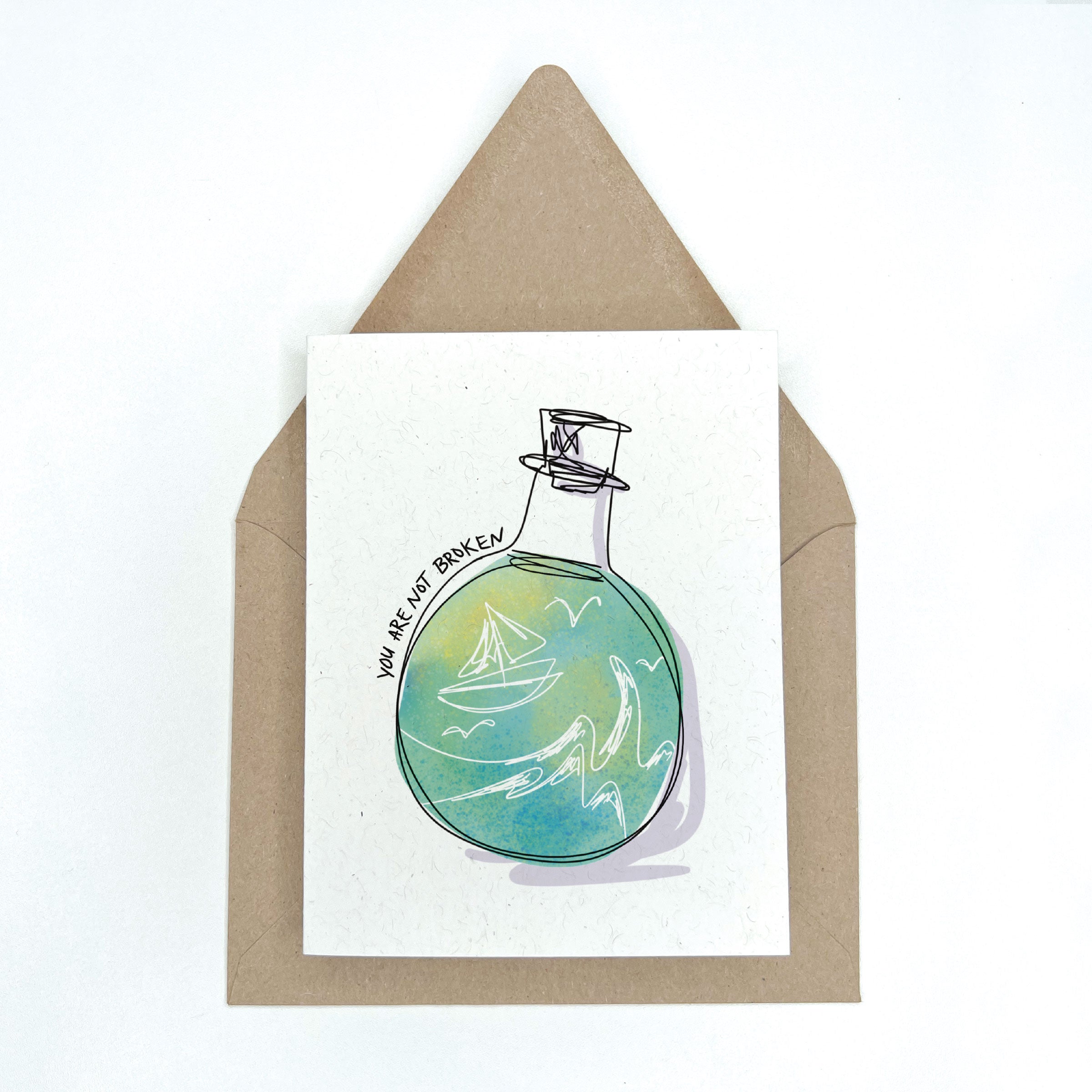This eco friendly greeting card was designed with mental health in mind. The message "You are not broken", paired with a heartfelt message from the sender, serves as a reminder to our loved ones that they are important, valued, & loved deeply. Perfect for both children & adults alike. Blank on the inside. Paired with a kraft envelope.
