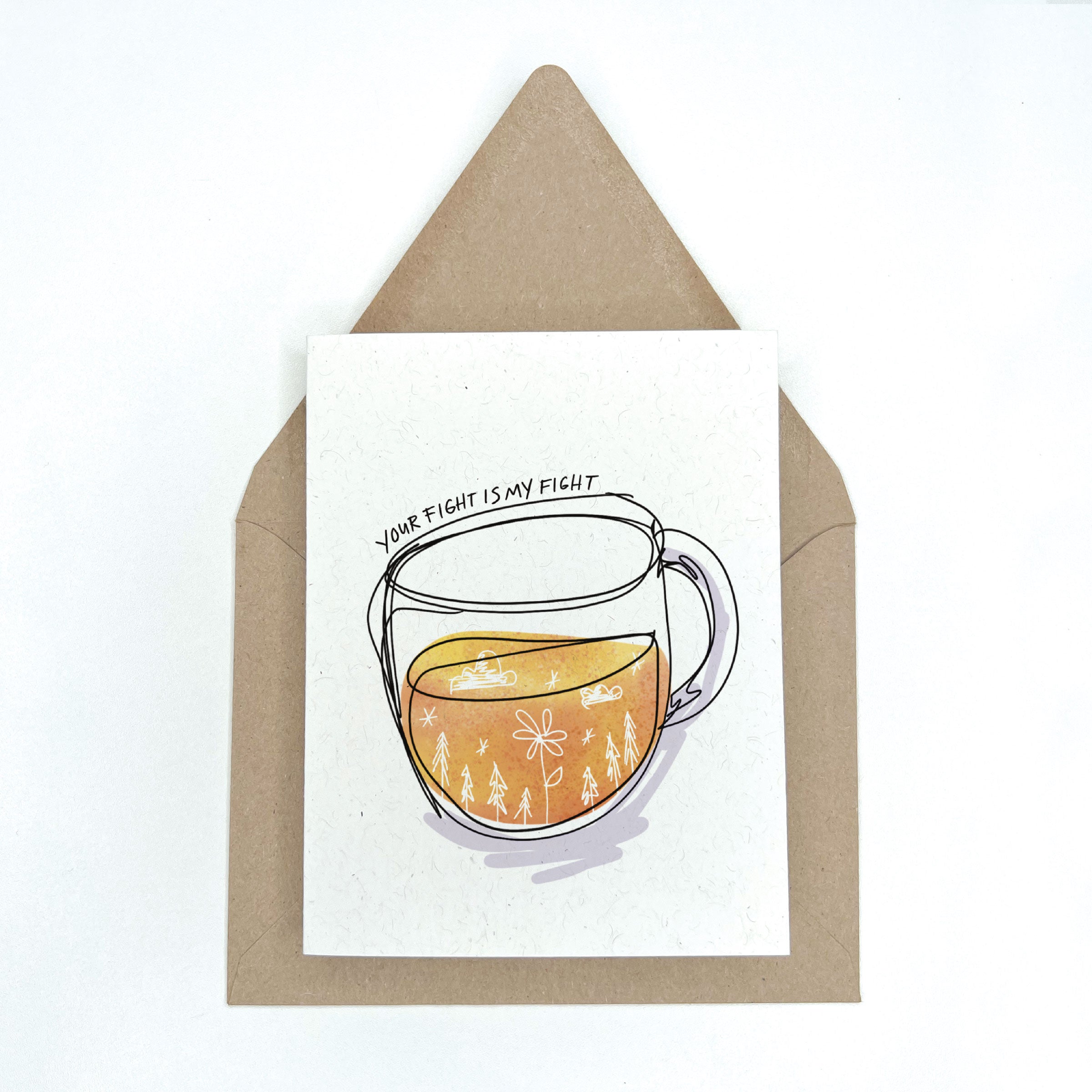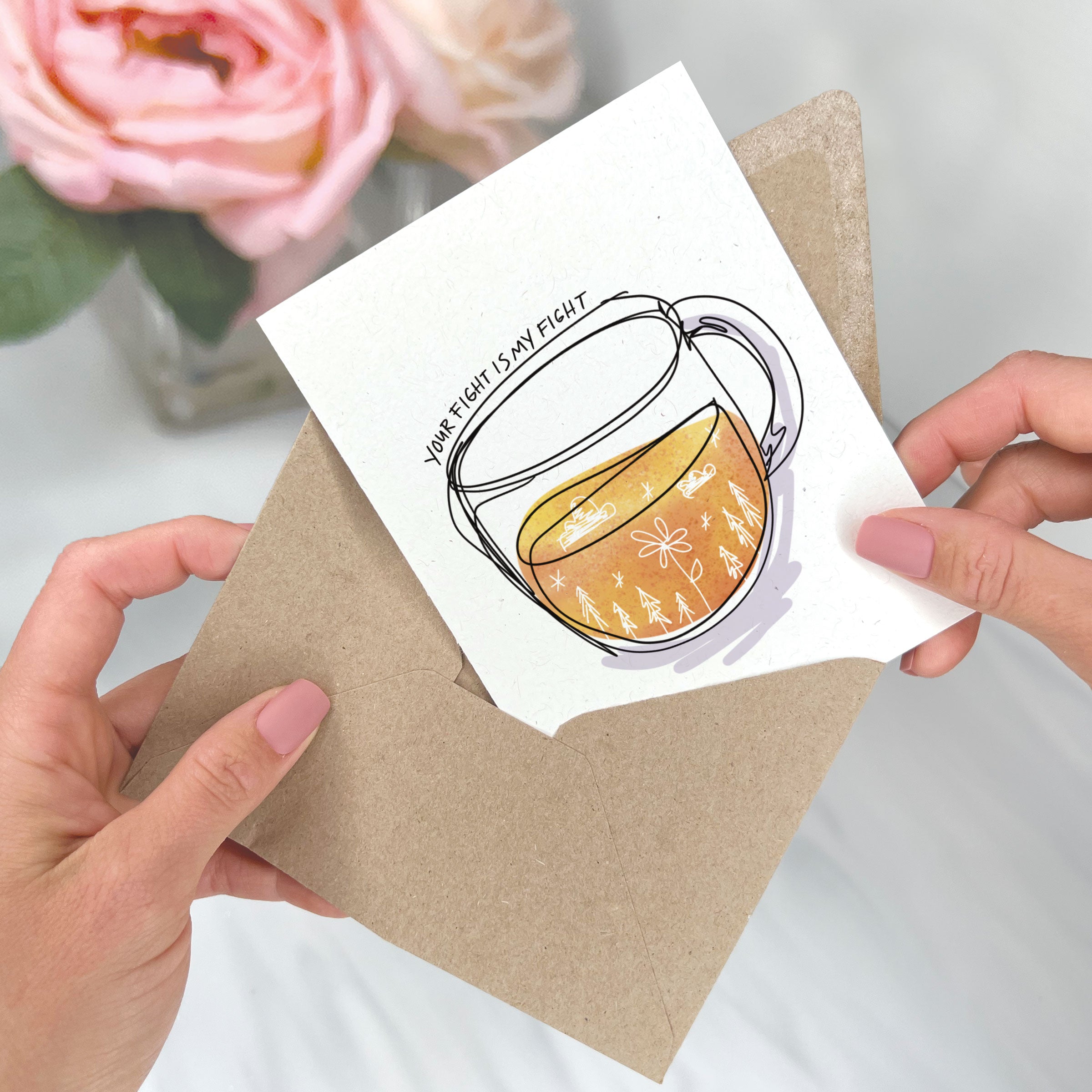 This eco friendly greeting card was designed with mental health in mind. The message "your fight is my fight", paired with a heartfelt message from the sender, serves as a reminder to our loved ones that they are important, valued, & loved deeply. Perfect for both children & adults alike. Blank on the inside. Paired with a kraft envelope.
